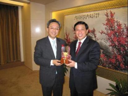 政制及內地事務局常任秘書長訪京(二) 政制及內地事務局常任秘書長羅智光(左)向外交部副部長張業遂致送紀念品。