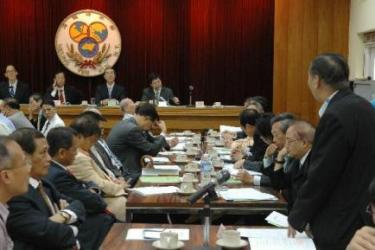 政務司司長出席鄉議局政制發展會議(一) 政務司司長唐英年今日(八月二十二日)出席鄉議局會議,討論《政制發展綠皮書》。圖示唐英年於會議上發言。