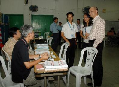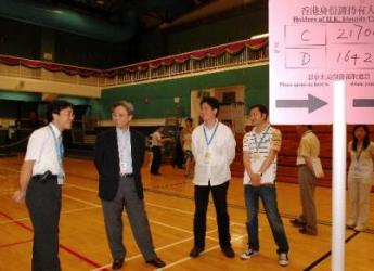 政制及內地事務局常任秘書長巡視屯門投票站 圖示政制及內地事務局常任秘書長羅智光(左二)今日(九月七日)下午巡視屯門大興體育館投票站。