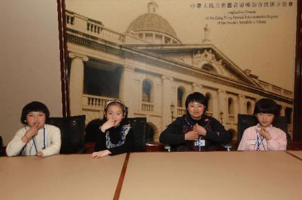 四川災區人士訪港(四) 圖示四川訪問團成員今日(一月二十日)在立法會會議室內試用會議設施。