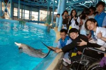 四川災區人士訪港(一) 應特區政府邀請,由四川地震災區人士及救災人員組成的訪問團來港參觀及交流。圖示訪問團今日(一月十八日)參觀海洋公園。