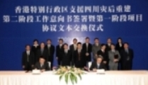 在四川省常務副省長魏宏和香港特別行政區政制及內地事務局局長林瑞麟的見證下,香港特別行政區政府與四川省人民政府今日(三月二十七日)在成都簽署《就香港特區第二階段支援四川地震災後恢復重建工作的意向書》(《特區第二階段援建工作意向書》),並交換了一些首階段項目的《項目合作安排》文本。 去年十月十一日,川港兩地政府簽訂了《就香港特別行政區支援四川地震災後恢復重建合作的安排》(《特區援建合作安排》),就援建工作的基本原則、確定首階段二十個援建項目、項目管理安排、資金管理安排,以及溝通協調機制等事宜定下合作的框架。 本年二月二十日,立法會財務委員會通過將早前同意開立的二十億元撥款增加四十億元至共六十億元,注入「支援四川地震災區重建工作信託基金」(基金),推展特區第二階段的援建工作。在《特區援建合作安排》的基礎上,川港雙方議定了一百○三個項目在第二階段推行。 簽訂《特區第二階段援建工作意向書》的主要目的,是闡明川港雙方的初步共識,以及港方就香港特區第二階段援建工作的意向,以便進一步推展有關的工作。初步議定的第二階段援建項目共一百○三個,包含五十二個教育、二十一個醫療康復、七個社會福利,以及二十三個與臥龍自然保護區重建相關的項目。特區政府會與川方緊密聯絡,進一步細化項目的工程範圍和估算費用。特區政府就第二階段項目的最高總承擔額約為三十八億元。貫徹「政府牽頭、全民參與」的精神,特區政府會聯絡香港賽馬會和一些商業機構,鼓勵它們資助一些項目。整體的目標是利用基金現有可動用的資源,全數推展有關項目。
