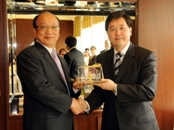政制及內地事務局局長與台中市市長會面(三) 政制及內地事務局局長林瑞麟今日(四月十四日)上午向台中市市長胡志強送贈紀念品。 |