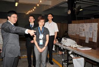 政制及內地事務局局長巡視灣仔區議會補選專用投票站(一) 政制及內地事務局局長林瑞麟今日(六月二十一日)上午巡視灣仔區議會鵝頸選區補選專用投票站。該專用投票站位於跑馬地成和道跑馬地警署內,為被執法機構(懲教署除外)還押或拘留的鵝頸選區選民而設。