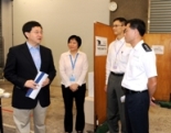 政制及內地事務局局長巡視葵青區議會補選專用投票站(一) 圖示政制及內地事務局局長林瑞麟今日(九月六日)上午巡視葵青區議會葵盛東邨選區補選專用投票站。該專用投票站位於葵涌道葵涌警署內,為被執法機構(懲教署除外)還押或拘留的葵盛東?選區選民而設。