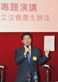 政制及內地事務局局長出席香港中華總商會午餐會(二) 圖示林瑞麟在會上介紹諮詢文件。 |