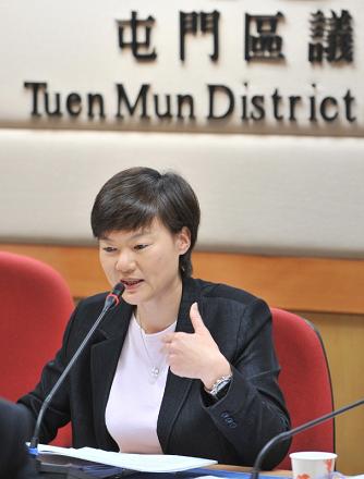 政制及內地事務局副局長出席屯門區議會會議(二) 黃靜文向與會人士簡介諮詢文件。 |
