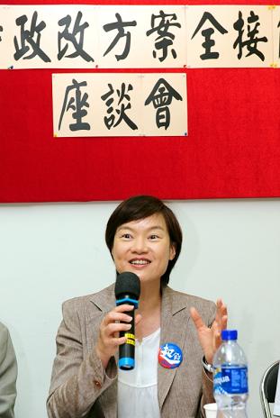 政制及內地事務局副局長出席政府人員協會政制方案座談會(一) 政制及內地事務局副局長黃靜文今日(六月九日)晚上出席由政府人員協會舉辦的政制方案座談會,討論《二零一二年行政長官及立法會產生辦法建議方案》。圖為黃靜文於會上。