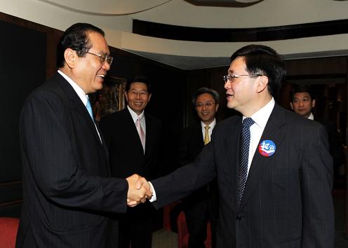 政制及內地事務局局長宴請中華港澳之友協會會長(一) 政制及內地事務局局長林瑞麟今日(六月十八日)設午宴招待訪港的中華港澳之友協會會長曾永權。圖示林瑞麟歡迎曾永權。