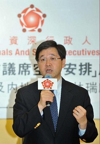 政制及內地事務局局長出席香港專業及資深行政人員協會填補立法會議席空缺安排座談會(一) 政制及內地事務局局長林瑞麟今日(七月二十五日)晚上出席由香港專業及資深行政人員協會舉辦的「填補立法會議席空缺安排」座談會,討論相關諮詢文件。