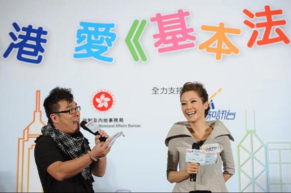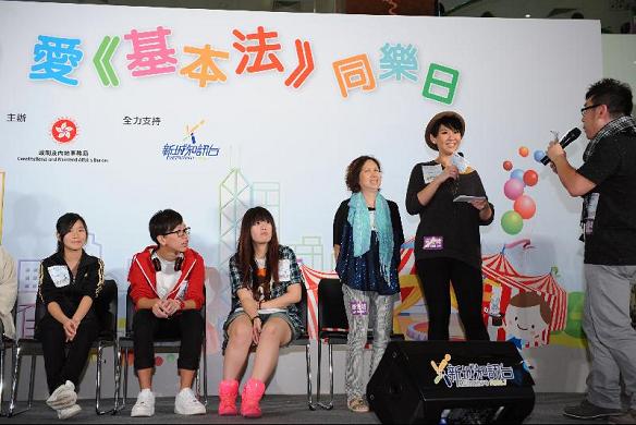 愛香港.愛《基本法》同樂日(五) 歌手鄭欣宜在「愛香港.愛《基本法》同樂日」與現場觀眾一同參與《基本法》遊戲環節,與眾同樂。