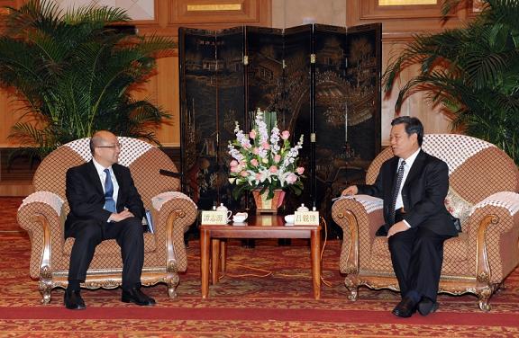 政制及內地事務局局長訪問深圳市(一) 政制及內地事務局局長譚志源(左)今日(十一月十四日)訪問深圳市,並與深圳市常務副市長呂銳鋒會面,就提升兩地各方面合作進行深入交流。