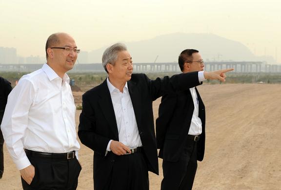 政制及內地事務局局長訪問深圳市(二) 政制及內地事務局局長譚志源(左)在前海管理局局長鄭宏傑(中)陪同下考察前海地區,了解前海地區基建發展的最新情況。 |