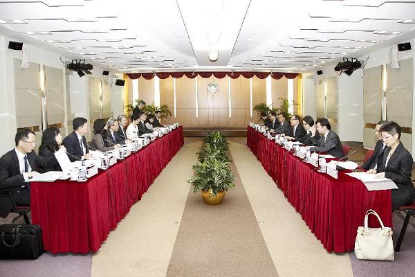 第五次港澳合作高層會議 財政司司長曾俊華(左六)今日(六月十二日)與澳門特別行政區經濟財政司司長譚伯源(右六)在澳門共同主持第五次港澳合作高層會議。 |