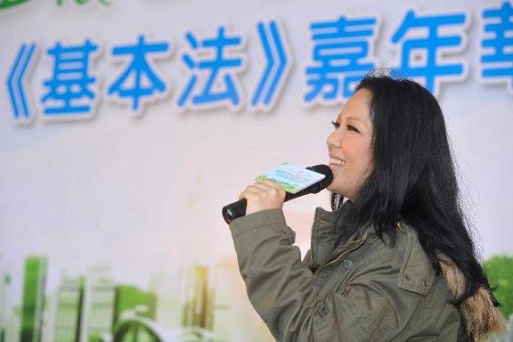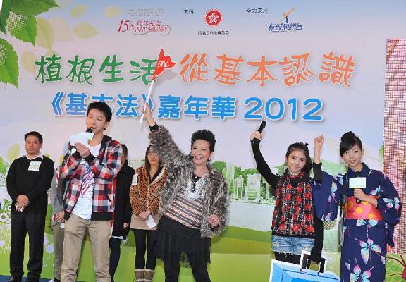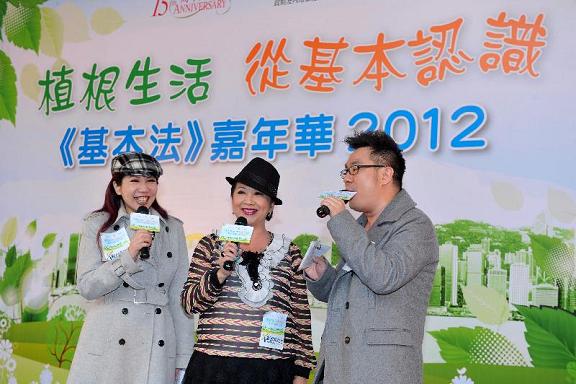 《基本法》嘉年華2012(十一) 藝人薛家燕(中)於嘉年華向市民推廣有關《基本法》的信息。 |