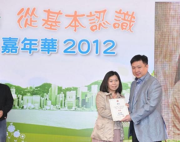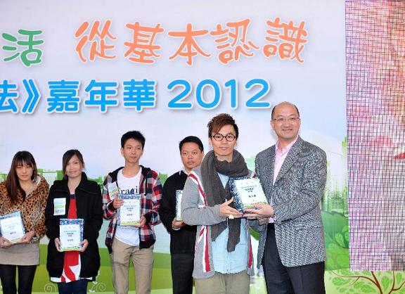 《基本法》嘉年華2012(五) 「『回歸十五載、細看香江情』《基本法》攝影比賽」的優勝者獲《基本法》推廣督導委員會公務員工作小組成員陳建強(右)頒贈獎狀。