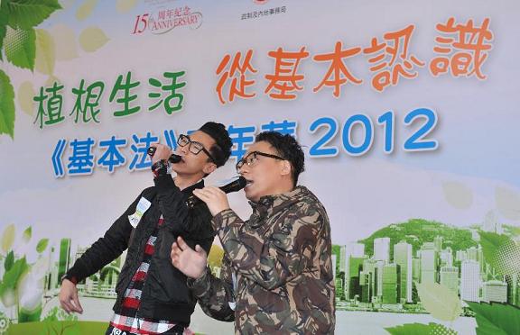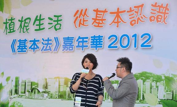 《基本法》嘉年華2012(八) 歌手鄭欣宜(左)呼籲市民加深對《基本法》的認識。