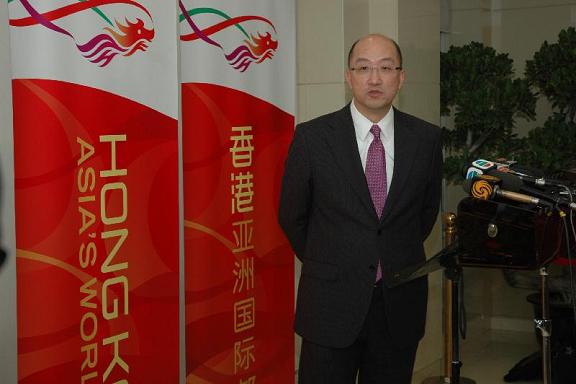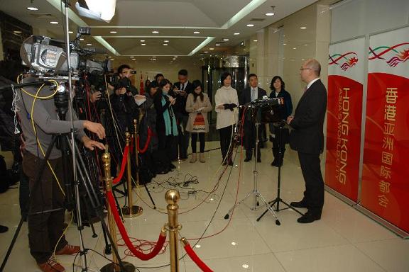 政制及內地事務局局長在北京會見傳媒(二) 譚志源在香港特別行政區政府駐北京辦事處會見傳媒。 |