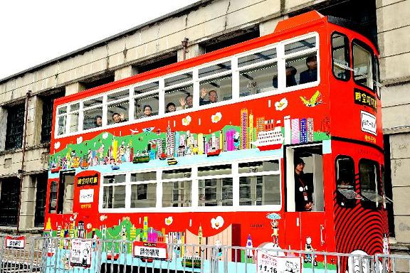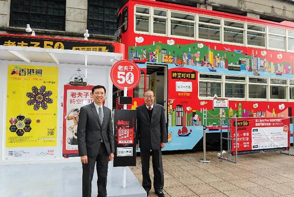 「協進會」主席訪問台北(一) 「港台經濟文化合作協進會」(協進會)主席李業廣今日(十二月十二日)繼續台北的訪問,在松山文創園區登上「時空叮叮車」,並參觀「老夫子50」展覽。這台按真實比例製作的香港雙層電車是香港文化象徵之一,由現在起至明年二月九日,在園區大街行駛,民眾可免費乘搭電車,體驗香港獨特的城市魅力。