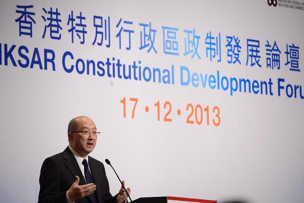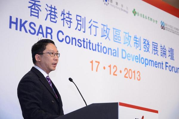 律政司司長和政制及內地事務局局長出席香江聚賢論壇(三) 譚志源在論壇上發言。 |