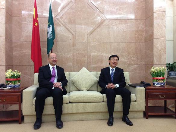 政制及內地事務局局長訪問澳門(一) 政制及內地事務局局長譚志源(左)今日(一月二十七日)下午訪問澳門,與澳門特別行政區行政長官辦公室主任譚俊榮討論加強港澳台合作。