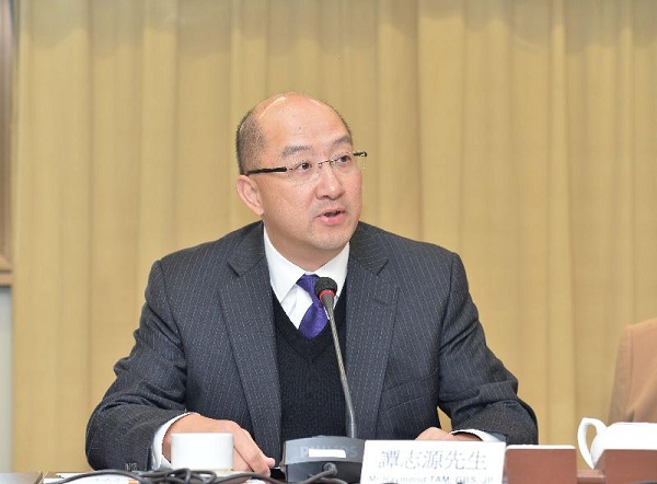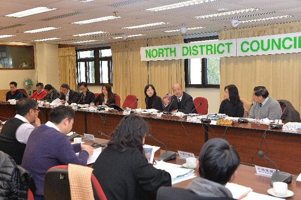 政制及內地事務局局長向北區區議會簡介諮詢文件(一) 政制及內地事務局局長譚志源(右三)今日(二月十三日)上午出席北區區議會會議,向議員簡介《二零一七年行政長官及二零一六年立法會產生辦法諮詢文件》和聆聽他們的意見。
