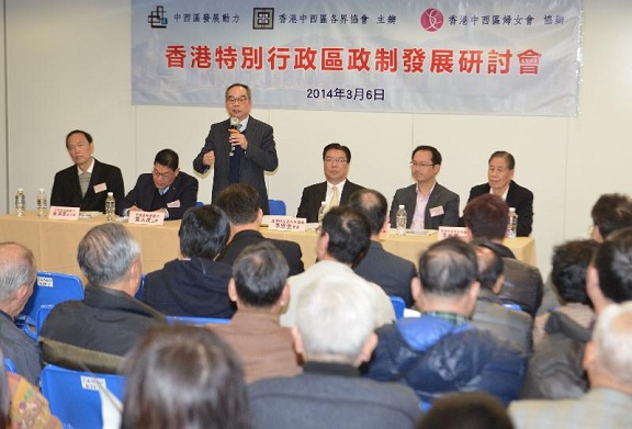 政制及內地事務局副局長出席中西區團體舉辦的政制研討會(一) 政制及內地事務局副局長劉江華(左三)今日(三月六日)晚上出席由中西區發展動力及香港中西區各界協會主辦、香港中西區婦女會協辦的「香港特別行政區政制發展研討會」,就《二零一七年行政長官及二零一六年立法會產生辦法諮詢文件》和與會者交流。