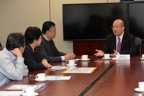 政制及內地事務局局長與九龍社團聯會就政制發展會面(一) 政制及內地事務局局長譚志源(右)今日(四月十五日)與九龍社團聯會會面,就《二零一七年行政長官及二零一六年立法會產生辦法諮詢文件》和與會者交流。