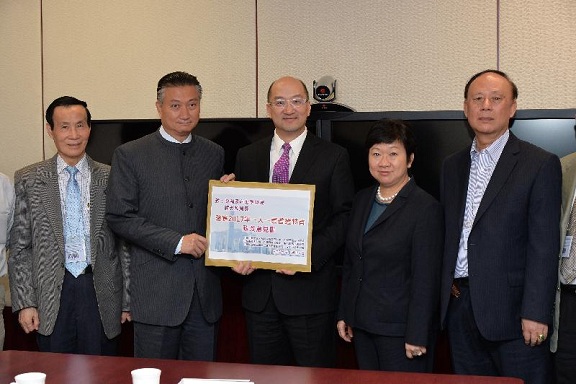 政制及內地事務局局長與九龍社團聯會就政制發展會面(二) 譚志源(中)接收有關政制發展的意見書。 |