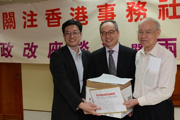 政制及內地事務局副局長出席政改座談會(二) 劉江華接收團體的政制發展意見書。 |