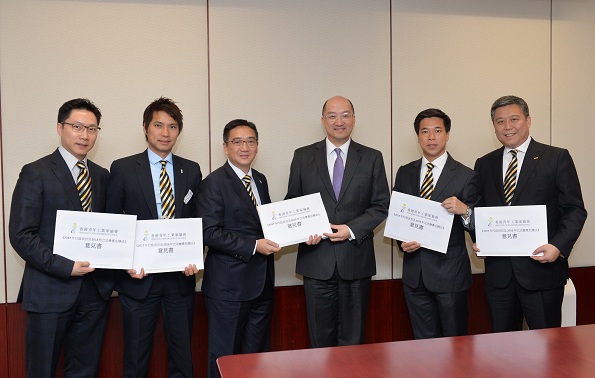 政制及內地事務局局長與香港青年工業家協會就政制發展會面(二) 譚志源(右三)接收香港青年工業家協會就政制發展的意見書。 |