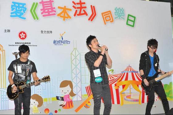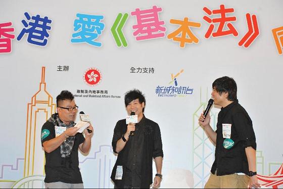 歌手啤梨(葉文輝)在同樂日呼籲市民加深認識《基本法》。