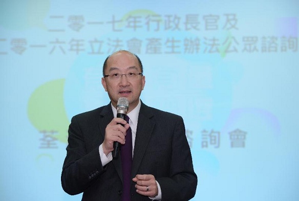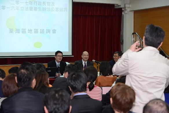 政制及內地事務局局長譚志源今日(二月二十七日)晚上出席由荃灣區議會舉辦的政制發展地區論壇,就《二零一七年行政長官及二零一六年立法會產生辦法諮詢文件》和與會者交流。
