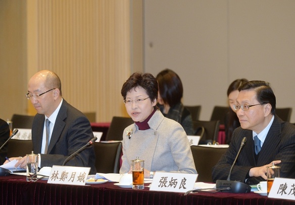陪同政務司司長出席會議的其他香港特別行政區政府官員包括政制及內地事務局局長譚志源、運輸及房屋局局長張炳良教授、食物及衞生局局長高永文、發展局局長陳茂波、政制及內地事務局常任秘書長張琼瑤、環境局副局長陸恭蕙、保安局副局長李家超、教育局副局長楊潤雄、商務及經濟發展局副局長梁敬國,以及財經事務及庫務局副局長劉怡翔。