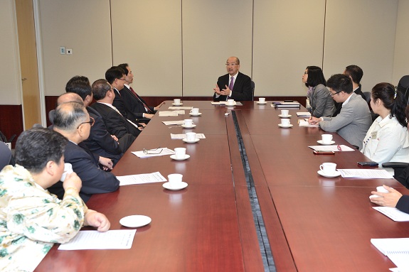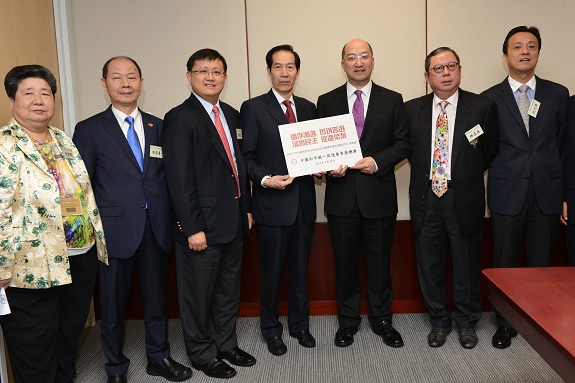 譚志源(右三)接收中國和平統一促進會香港總會就政制發展的意見書。