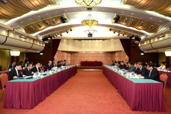 財政司司長曾俊華(左六)與澳門特別行政區經濟財政司司長梁維特(右六)今日(七月十五日)共同主持在澳門舉行的第九次港澳合作高層會議。
