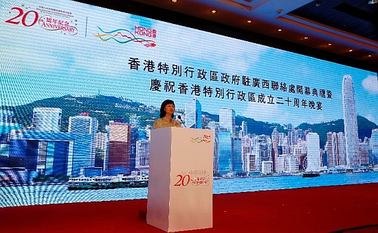 張琼瑤同時表示,適逢今年是香港特區成立二十周年,今年特區政府各個駐內地辦事處會在內地不同省市舉辦超過100項慶祝活動。就廣西而言,除了是次慶祝晚宴外,還有本月稍後時間舉行的多媒體跨界音樂會,以及今年九月舉辦的大型展覽。