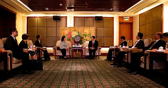政制及內地事務局常任秘書長張琼瑤(左四)今日(五月十日)在南寧禮節性拜會廣西壯族自治區黨委書記彭清華(左五)。
