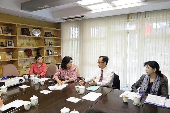 政制及內地事務局局長聶德權(右二)今日(八月十五日)到訪香港特別行政區政府駐北京辦事處(駐京辦),聽取駐京辦主任傅小慧(左二)匯報工作。