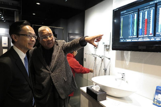 政制及內地事務局局長聶德權(左)今日(一月十一日)在佛山參觀一家香港企業,聽取企業代表介紹公司產品,以及在佛山的營商情況和發展機遇。