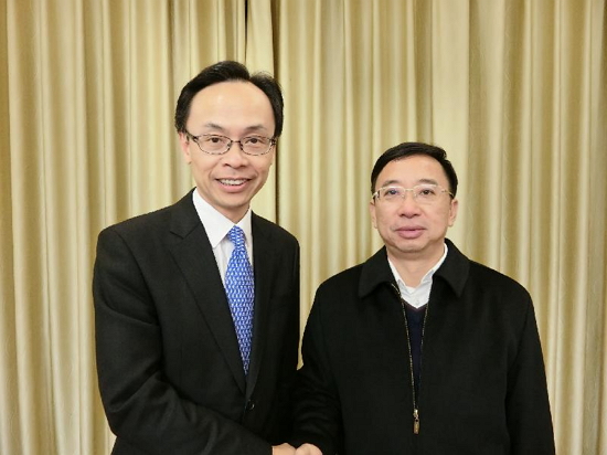 聶德權昨日(一月十日)傍晚抵達佛山後,與佛山市市長朱偉和副市長俞進會面,就香港和佛山的最新情況交換意見,並探討在粵港澳大灣區規劃下兩地未來的合作。