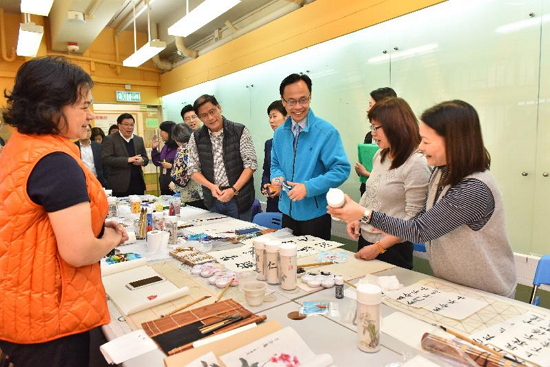 政制及內地事務局局長聶德權(右三)今日(一月二十五日)到訪黃大仙香港聖公會黃大仙長者綜合服務中心,並與參加書畫班的學員交談。