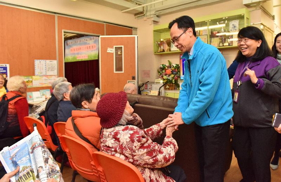 政制及內地事務局局長聶德權(右二)今日(一月二十五日)參觀黃大仙香港聖公會黃大仙長者綜合服務中心的設施,了解中心為長者提供的服務。