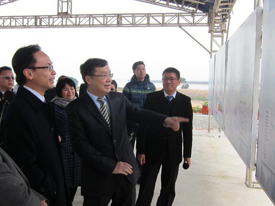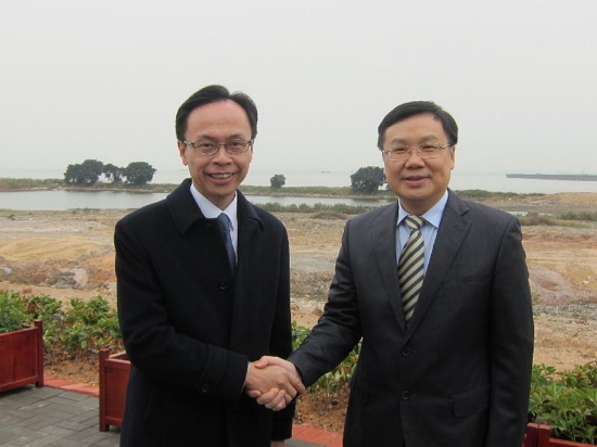 政制及內地事務局局長聶德權(左)今日(二月七日)考察東莞的濱海灣新區,了解東莞市的最新規劃和發展。
