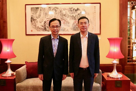 政制及內地事務局局長聶德權(左)今日(八月二十九日)訪問前海,與深圳市副市長艾學峰會面,就港深兩地的合作事宜交流意見。