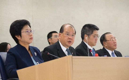 張建宗在回應成員國的關注及提問時重申,香港特區在「一國兩制」之下享有高度自治,而基本權利和自由均受《基本法》保障。
