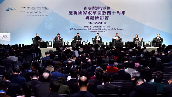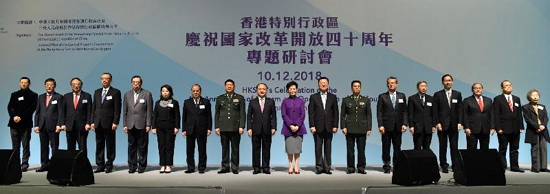 香港特別行政區(香港特區)政府今日(十二月十日)在香港會議展覽中心舉行慶祝國家改革開放四十周年專題研討會,回顧香港在國家改革開放所作的貢獻,並探討香港在國家新一輪改革開放中的角色和機遇。