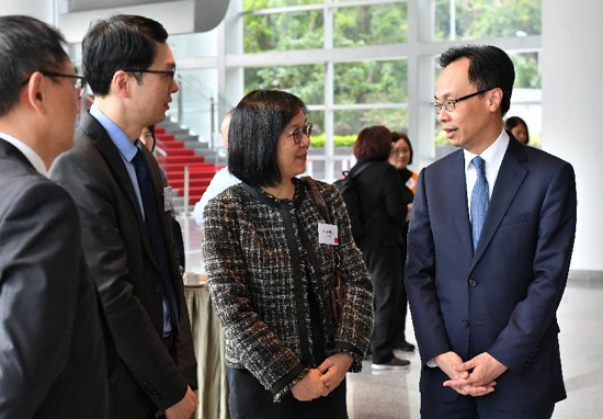 政制及內地事務局今日(一月二十八日)為醫護人員舉辦簡介會,向他們介紹新制定的培訓資源,以提高他們對性小眾的認識和敏感度。圖示政制及內地事務局局長聶德權(右一)與出席簡介會的醫護界代表交談,了解他們為性小眾人士提供醫護服務的工作和需要。