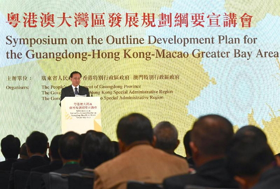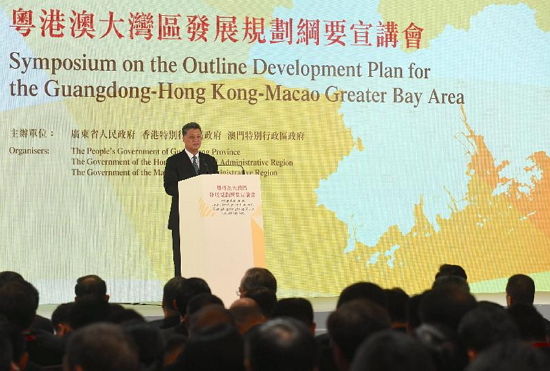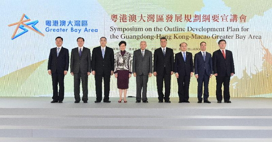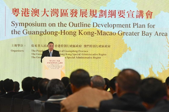 香港特別行政區政府與廣東省人民政府和澳門特別行政區政府今日(二月二十一日)共同舉辦《粵港澳大灣區發展規劃綱要》宣講會,介紹《粵港澳大灣區發展規劃綱要》(《規劃綱要》)內容和探討粵港澳大灣區(大灣區)的發展機遇,約八百名來自相關中央部委,以及香港、廣東省和澳門社會各界的代表應邀出席。