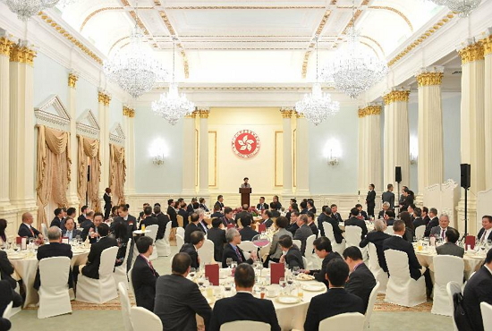 行政長官林鄭月娥今日(二月二十一日)在禮賓府宴請訪港出席《粵港澳大灣區發展規劃綱要》宣講會的中央部委、廣東省政府和澳門特別行政區政府代表。